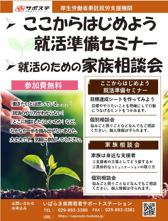 いばらき県南若者サポートステーション、通称「いばらき県南サポステ」は、就労相談やセミナーで若者の就労の支援を行っています。